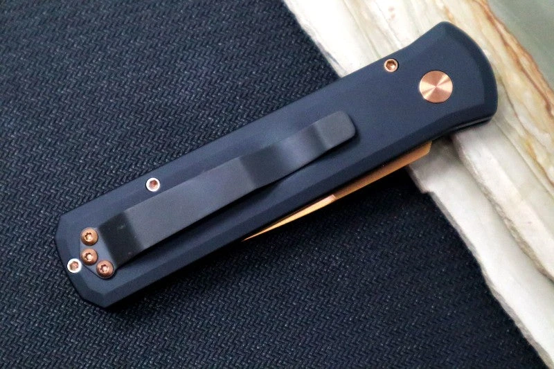 The Godson by Pro Tech is a classic in the Pro Tech line. This knife is a modern take on the classic Italian Stilettos of yesterday. The handles are an anodized aluminum with a snappy spearpoint blade that deploys quickly with just the push of a button.