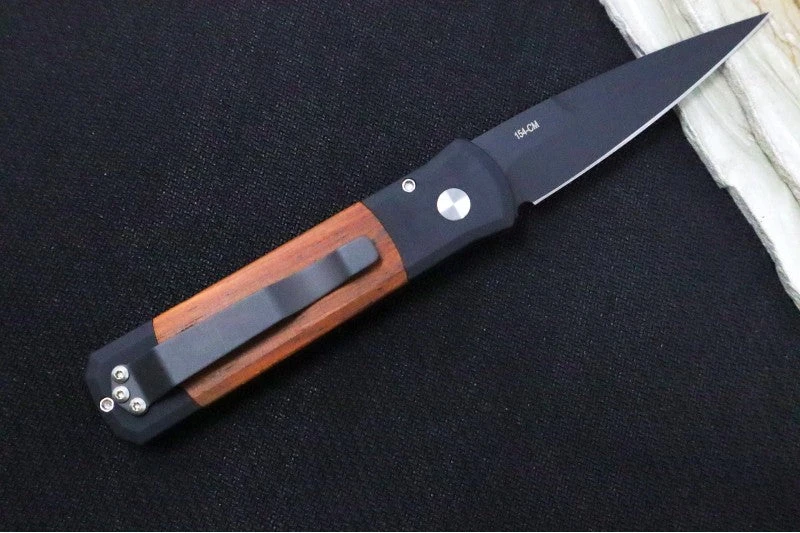 The Godson by Pro Tech is a classic in the Pro Tech line.  This knife is a modern take on the classic Italian Stilettos of yesterday.  The handles are an anodized aluminum with a snappy spearpoint blade that deploys quickly with just the push of a button. Â