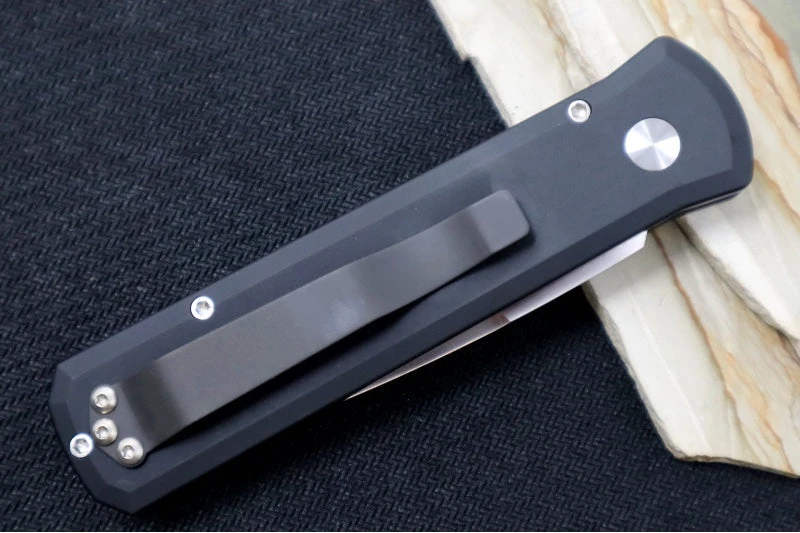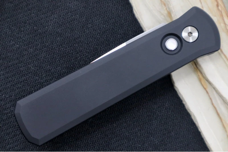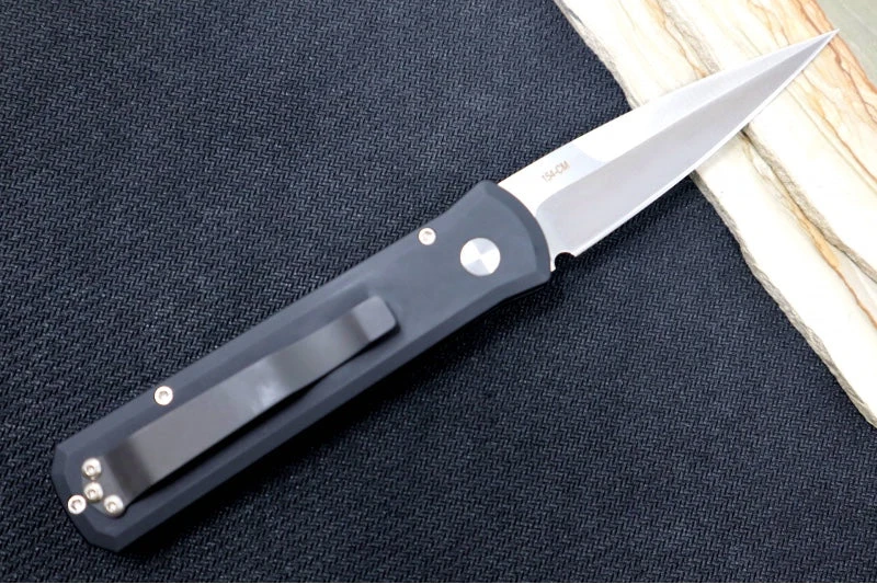 The Godson by Pro Tech is a classic in the Pro Tech line.  This knife is a modern take on the classic Italian Stilettos of yesterday.  The handles are an anodized aluminum with a snappy spearpoint blade that deploys quickly with just the push of a button. Â