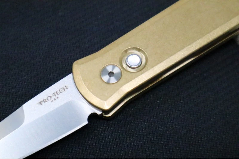 The Godson by Pro Tech is a classic in the Pro Tech line.  This knife is a modern take on the classic Italian Stilettos of yesterday.  The handles are an anodized aluminum with a snappy spearpoint blade that deploys quickly with just the push of a button. Â