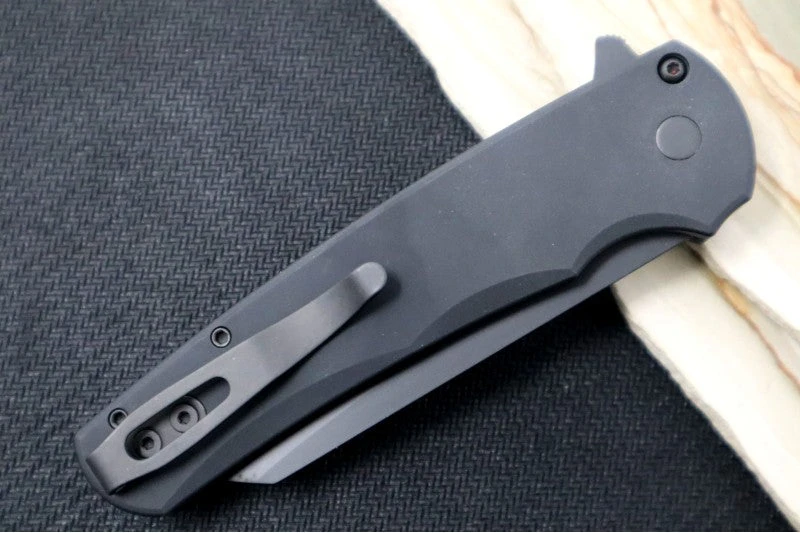 This Malibu Operator has a black aluminum handle and a black DLC coated reverse tanto blade and hardware.