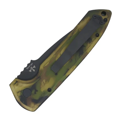 REC Exclusive Woodland Camo Handle, Black Hardware, DLC Blade, Pearl Button