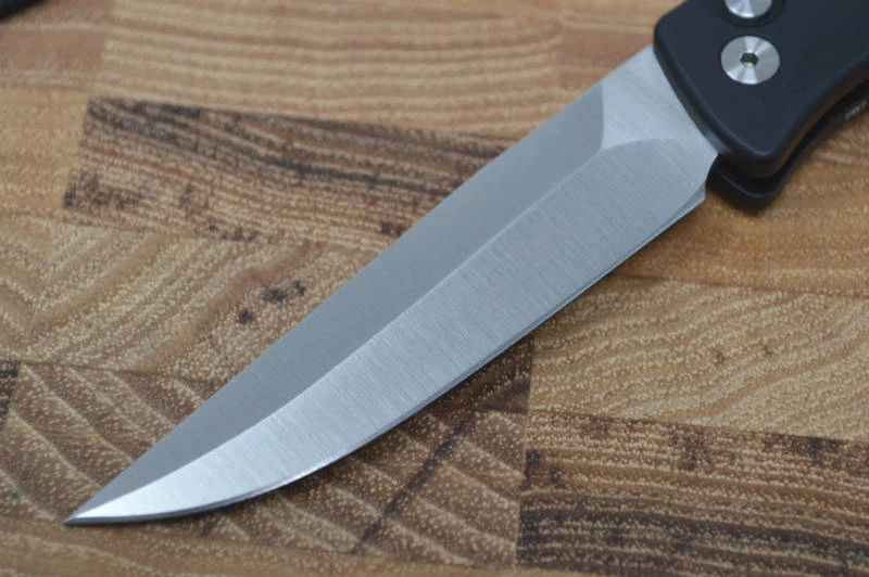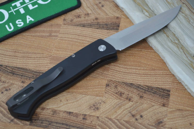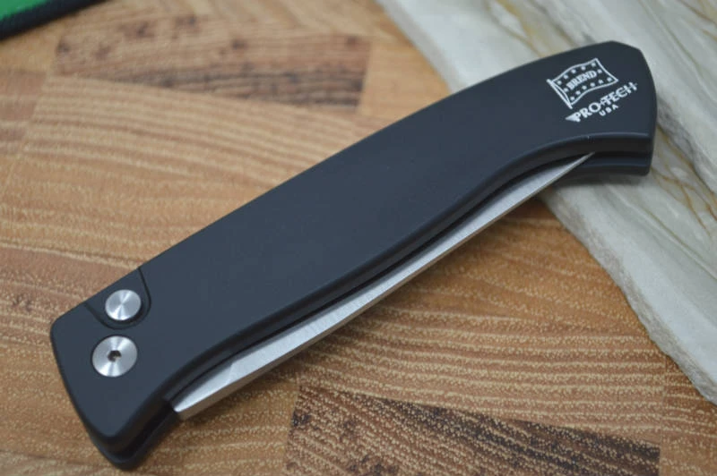 The Pro-Tech Brend Auto comes in 3 sizes and features the famous Walter Brend Model 1 blade shape. This blade grind narrows rapidly, making a thin slicing edge that makes quick work of any cutting task, while the belly of the blade gives plenty of edge that can be used to cut at various angles. The reverse swedge on the spine of the blade runs up the entire blade and terminates at the trailing point tip, further mitigating cutting friction while providing a sharp tip that excels at cutting chores. This legendary blade shape is designed to get whatever work you may need done quickly and efficiently. The handle uses gentle slopes to index the hand, along with a pinky choil to aid with cutting power and support accurate cutting. Whether you prefer the large, medium, or small version of the Brend, this knife will handle any task you throw at it!