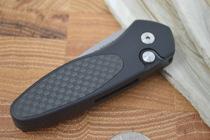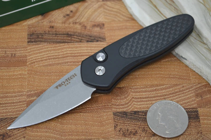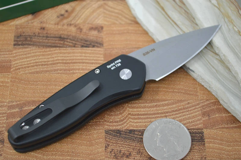 The Sprint series by Pro Tech are great small carry California Legal automatic knives.  Don’t let the small size fool you though, these are premium knives that really pack a punch when it comes to quality.  The handles are an anodized aluminum that come in a variety of colors, the blade is an S35VN and comes either black or satin and it is finished off with a deep carry clip for discreet carry. Â