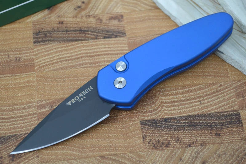 The Sprint series by Pro Tech are great small carry California Legal automatic knives.  Don’t let the small size fool you though, these are premium knives that really pack a punch when it comes to quality.  The handles are an anodized aluminum that come in a variety of colors, the blade is an S35VN and comes either black or satin and it is finished off with a deep carry clip for discreet carry. Â