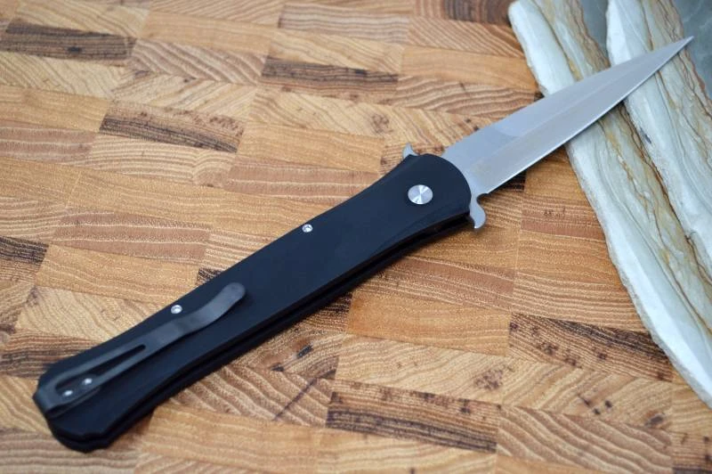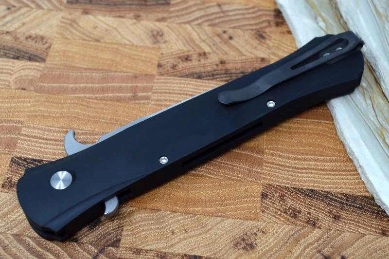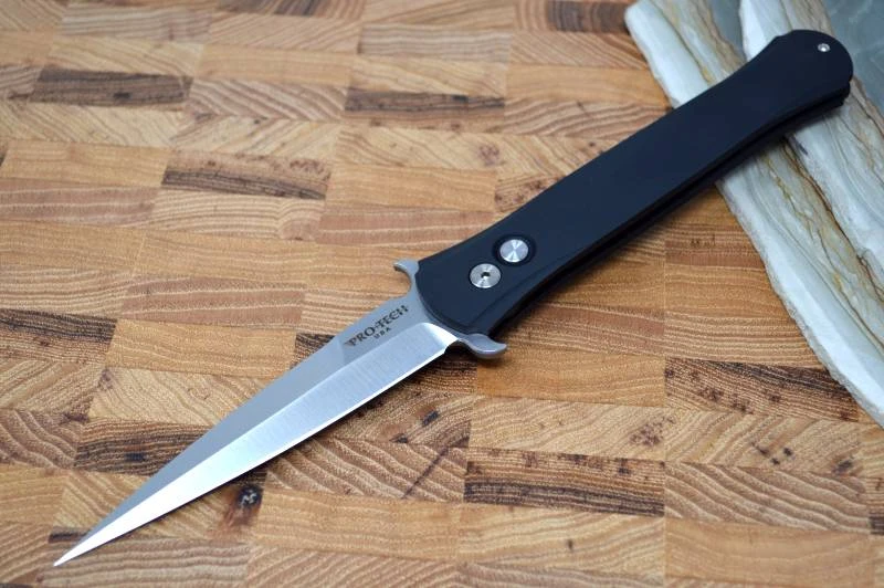 The Don by Pro Tech is a classic in the Pro Tech line. The Large Don by Pro Tech is a larger version of this classic. This knife is a modern take on the classic Italian Stilettos of yesterday. They have stayed true down to the smallest detail to include blade wings as well. The handles are an anodized aluminum and are contoured for a very comfortable feel. A snappy spearpoint blade that deploys quickly with just the push of a button is fitted to the handle.  A deep carry pocket clip really fills this out.